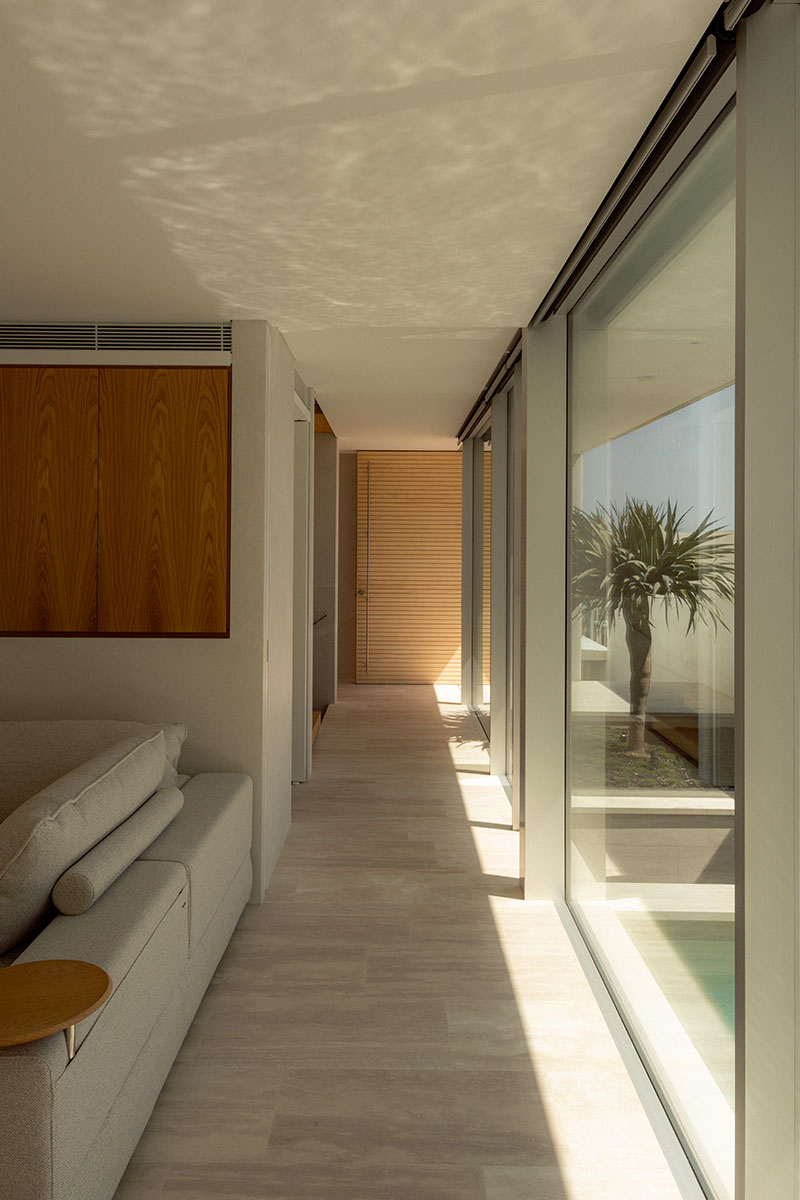 Expansive Swiss Sky-Frame glazing dissolves the boundary between inside and out, capturing the ever-changing light and coastal tones. Behind the tranquil interiors lies a highly considered layer of innovation, including integrated smart wiring, intelligent shower systems, and discreet home-automation features woven effortlessly throughout.